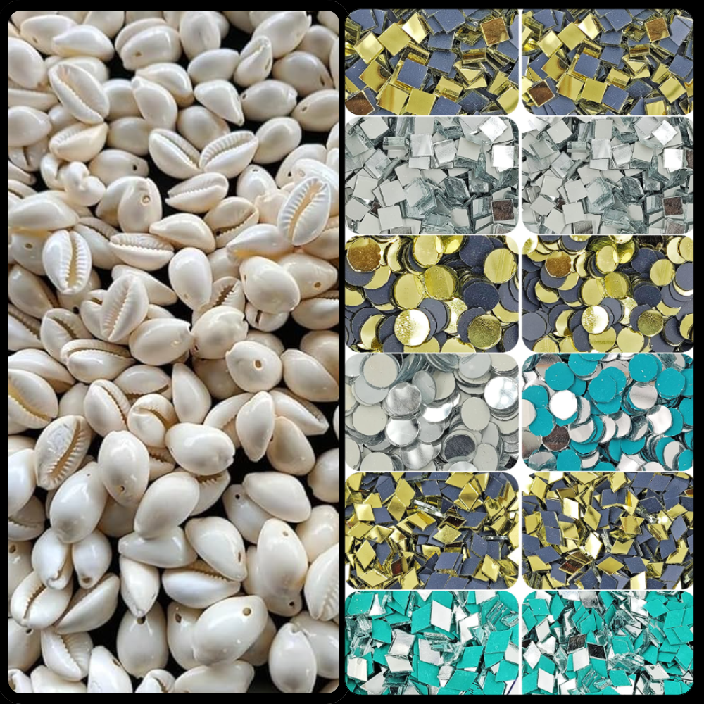 Cowrie shells symbolize wealth and abundance and mirrors reflect back evil eyes