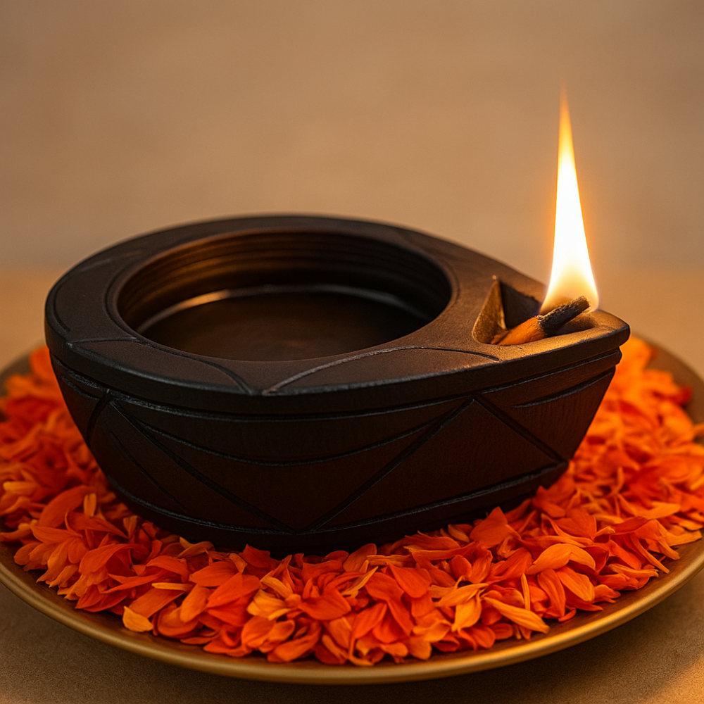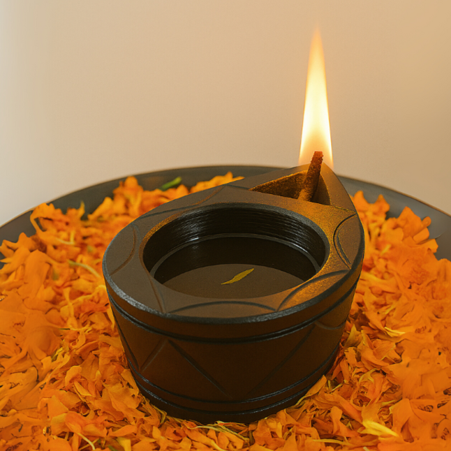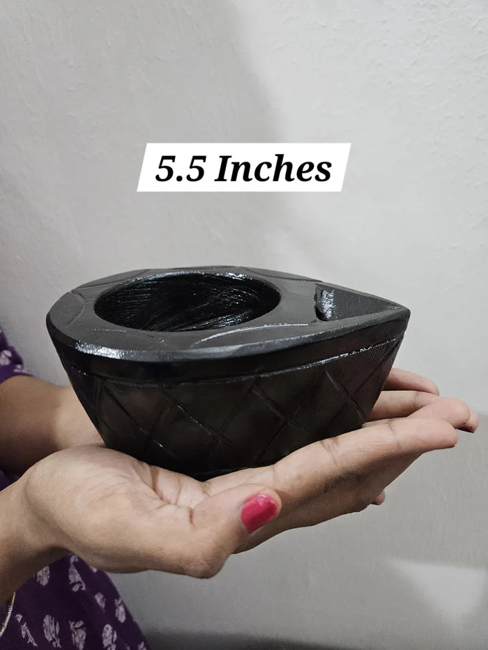 Made from natural Basalt stone, this traditional diya can burn up to 20 hours. A beautiful choice for home, temple, or festive gifting.